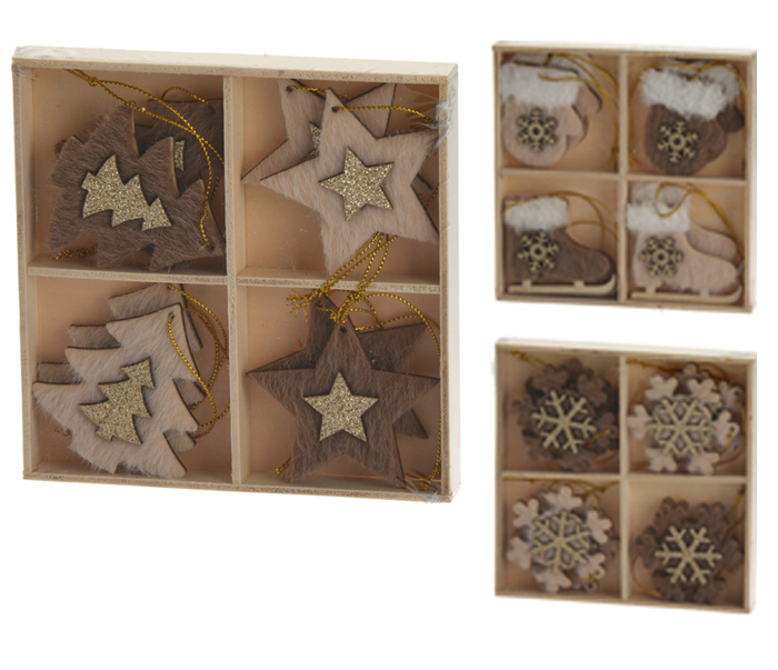 Dekorace vánoční k zavěšení dřevěná - sada 8ks mix
