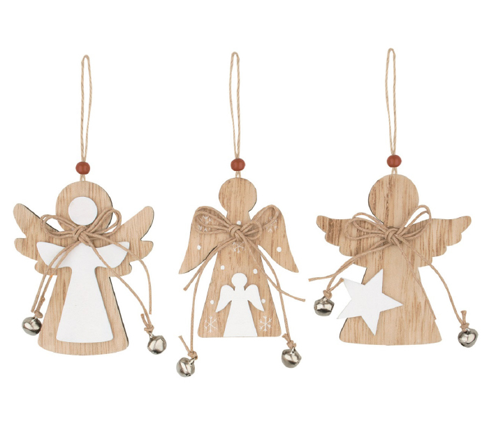 Dekorace vánoční k zavěšení dřevěná - anděl s rolničkou 8cm mix