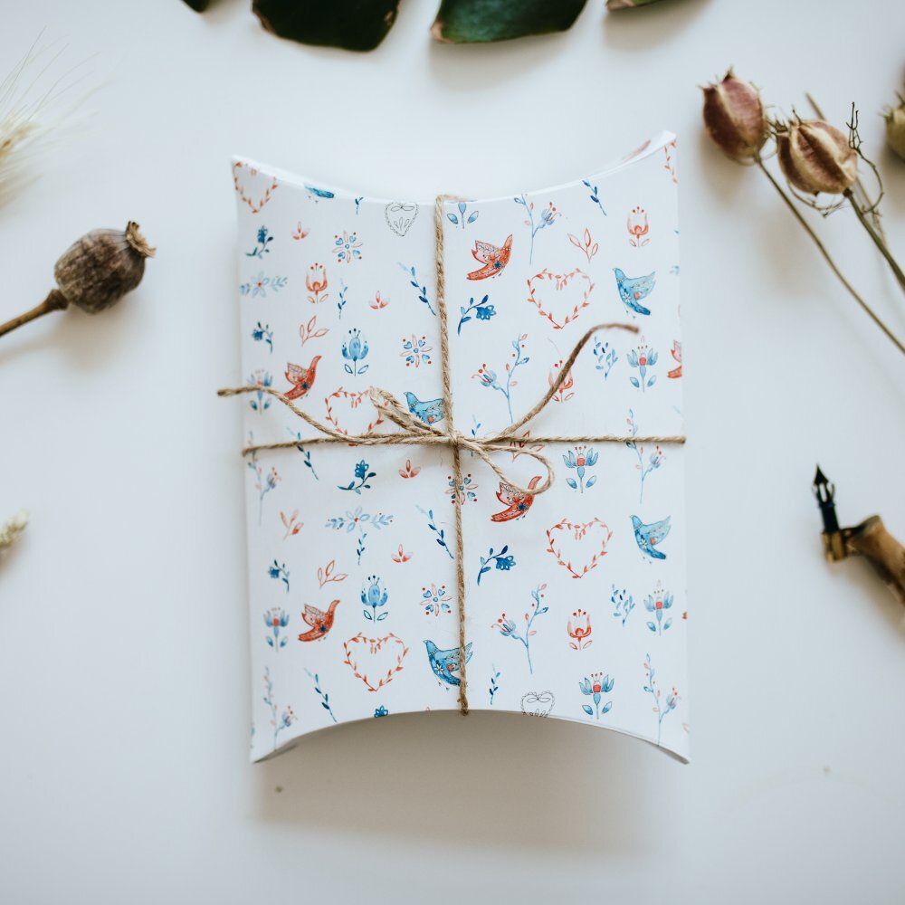 Be Nice EKO krabička Z lásky. Využijte k balení dárků klip klop krabičky s designem folkloru - holubice, květiny, srdce, které můžete složit a rozložit dle potřeby. Do krabičky vložíte dárek a zase ji lehce zavřete. Krabička krásně drží tvar, takže není možné na první pohled odhadnout, jaký obsah ukrývá. Originální motivy vytvořila česká ilustrátorka Bára z Nikolajky.
