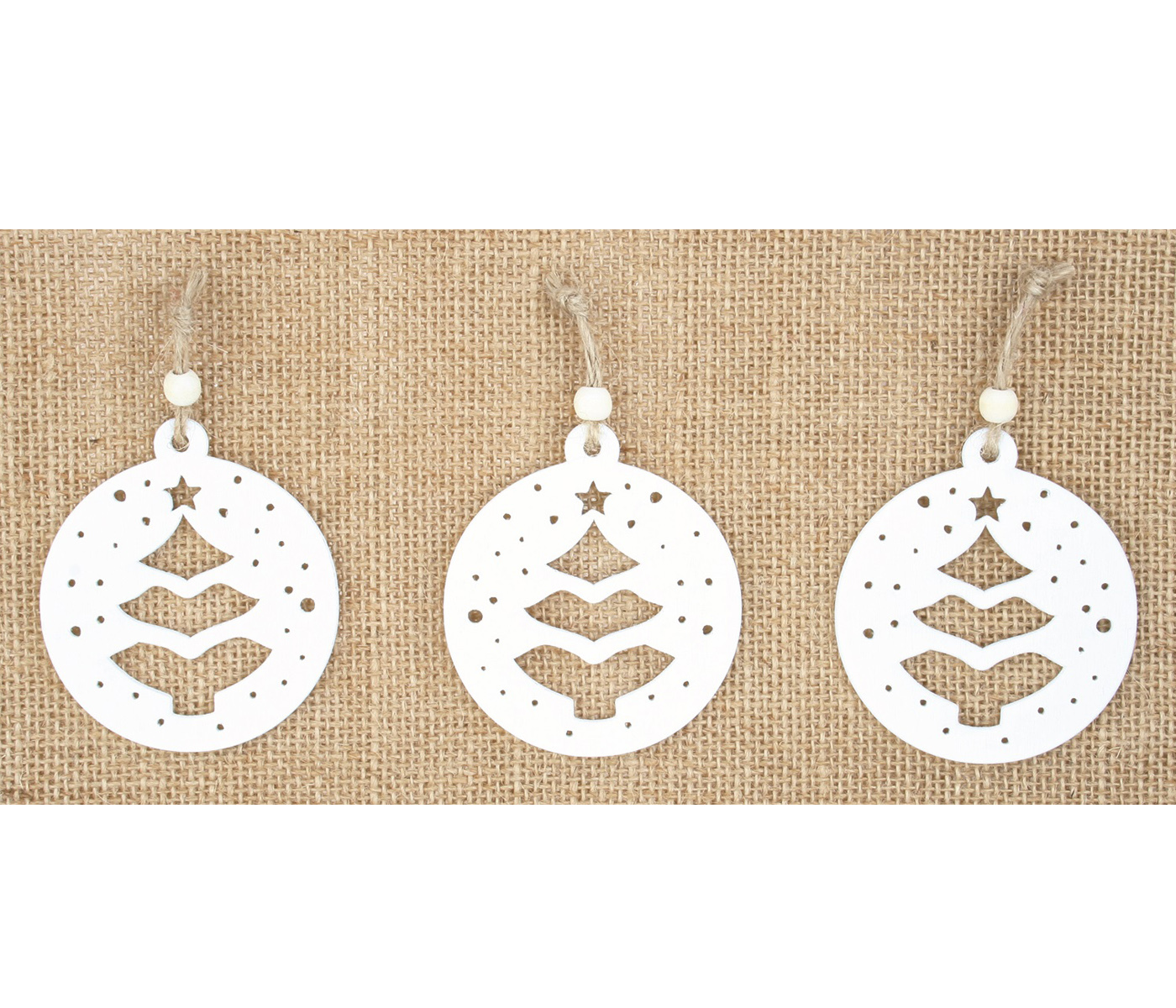 Dekorace vánoční - Stromek dřevěný bílý 6 cm 3ks, na zavěšení, 4861
