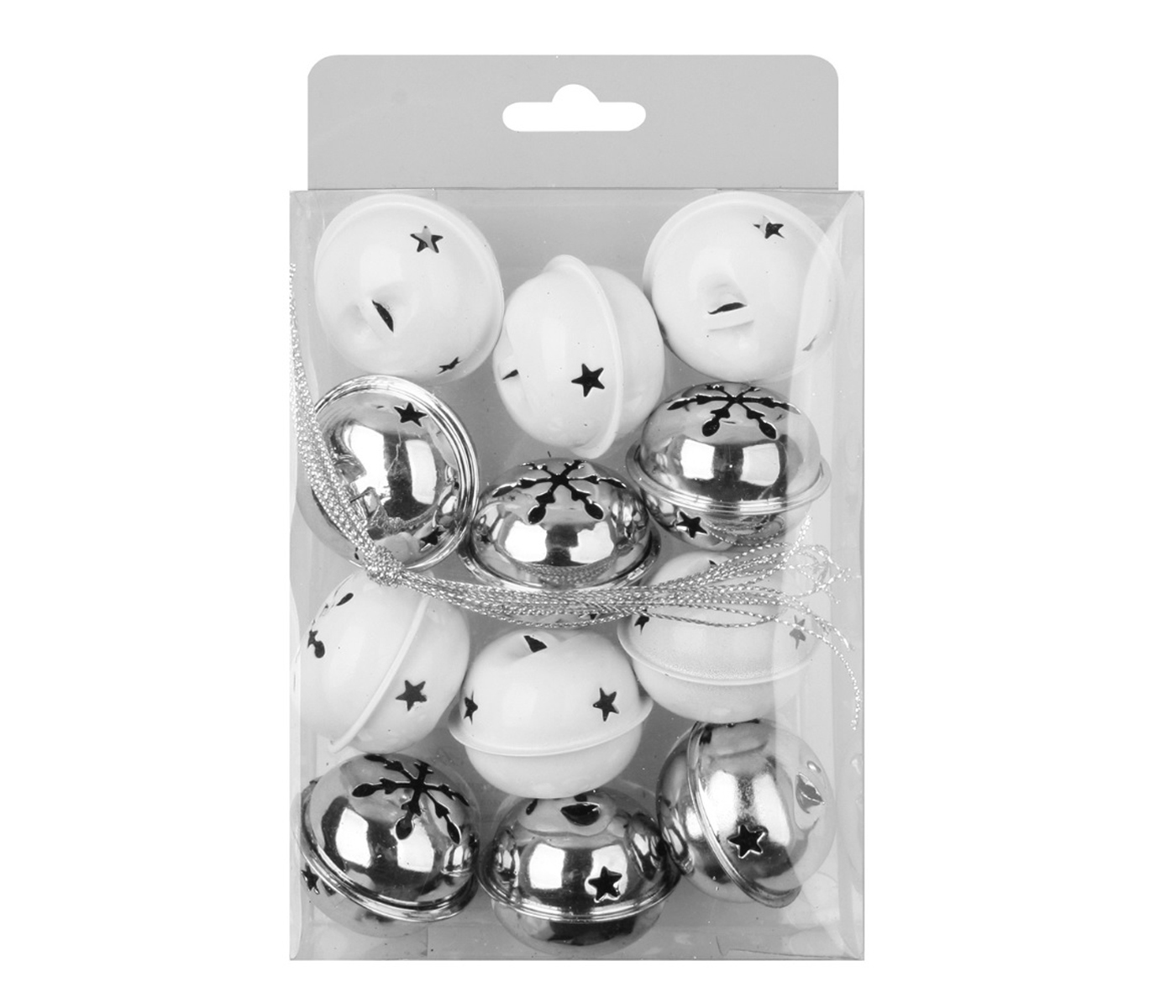 Dekorace vánoční - rolničky bílé a stříbrné 4cm, 12ks