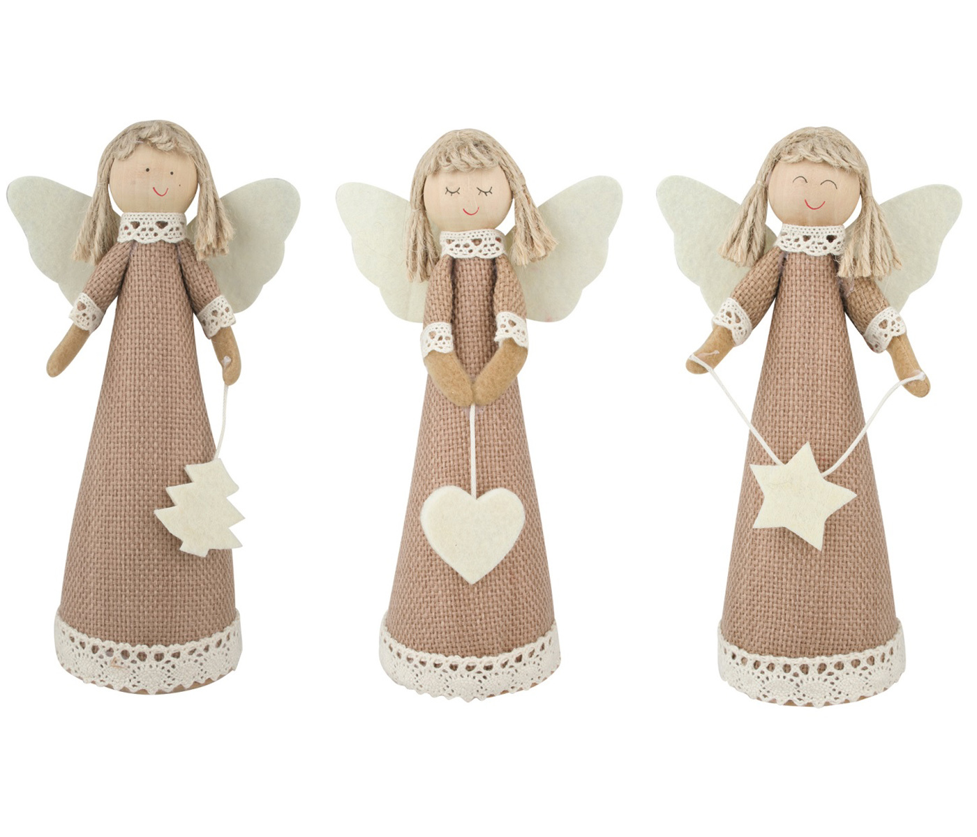 Anděl jutový s krajkou 18cm na postavení, 3092