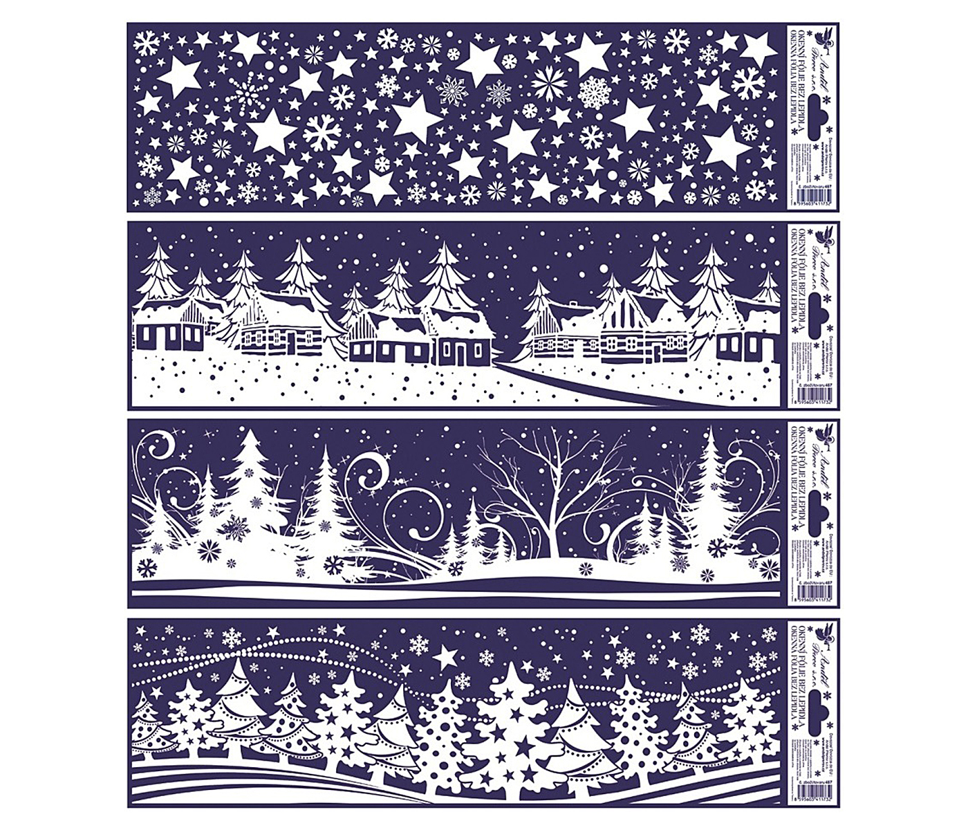 Okenní fólie vánoční krajinky pruh 41,5x12cm, 467