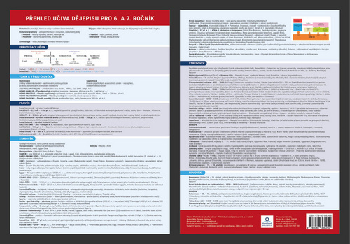 Přehledně zpracované učivo dějepisu 6. a 7. ročníku pro snadné zapamatování základní výkladové látky, zpracované v souladu s RVP ZV. Karta obsahuje témata: Pravěk, Starověk, Středověk a Novověk. Přehledová tabulka slouží především pro žáky druhého stupně základní školy. prečítať celé