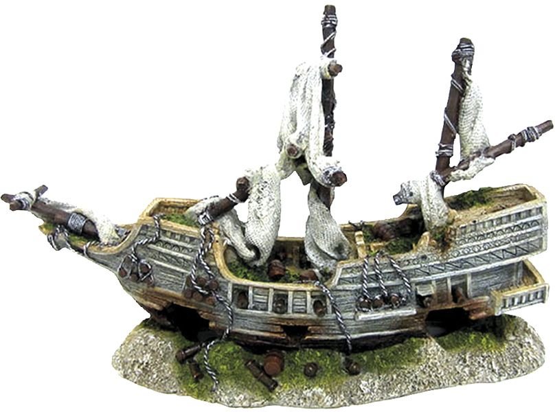 Dekorace do akvária značky Nobby. Vrak lodi Galeona. Velikost 35,8 x 13 x 22,5 cm. Vyrobeno z polyresinu (syntetické pryskyřice) Velmi detailní provedení. Netoxické - neutrální na biologické rovnováhy. Vhodné pro sladkou nebo slanou vodu. UPOZORNĚNÍ: Před prvním použitím v akváriu...