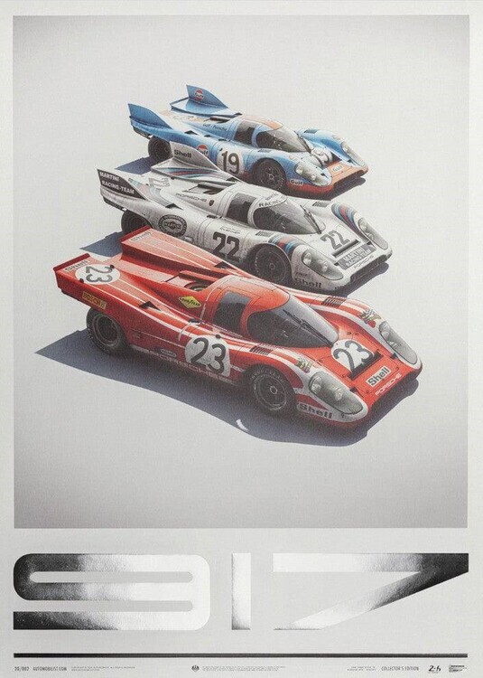 Umělecký tisk Porsche 917 - Salzburg & Martini & Gulf - 24h Le Mans, 50 × 70 cm