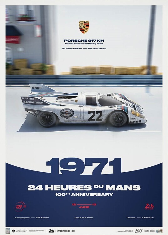 Umělecký tisk Porsche 917 KH - 24h Le Mans - 100th Anniversary - 1971, 50 × 70 cm
