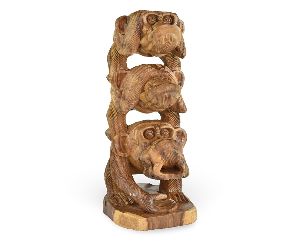 Dřevěná soška Tři moudré opice 40 cm - var. A - jednobarevná