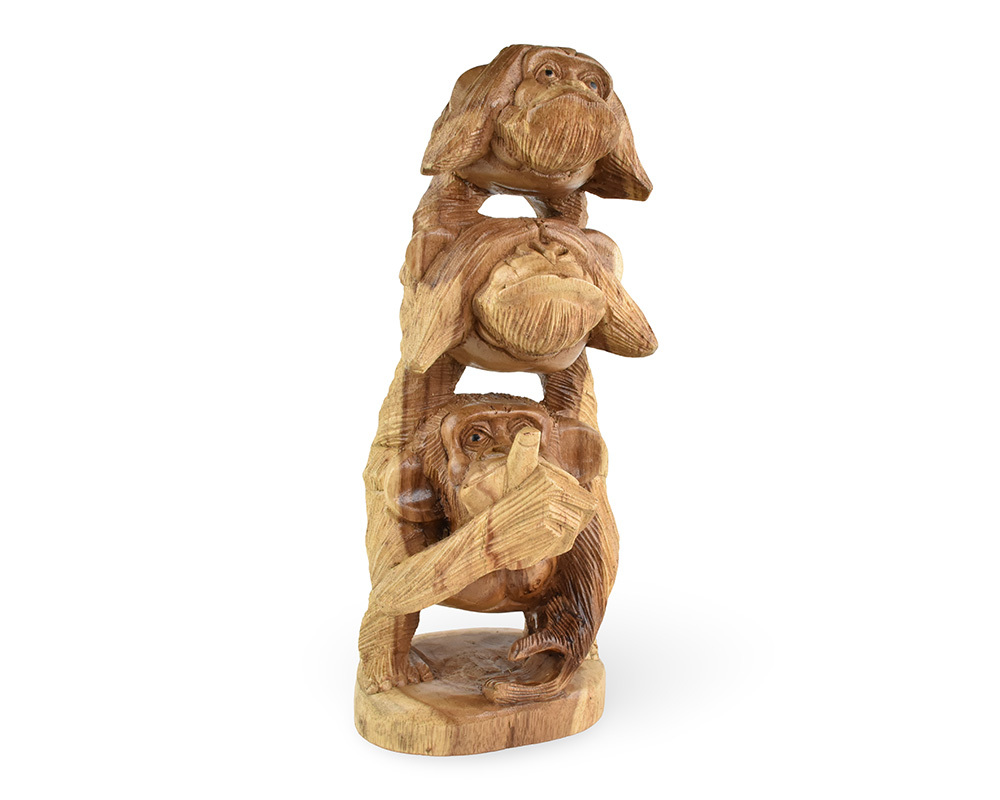 Dřevěná soška Tři moudré opice 40 cm - var. C - dvoubarevná