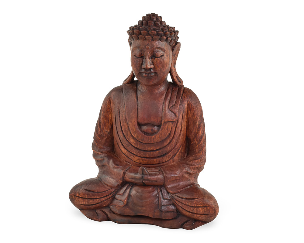 Dřevěná soška Buddha 25 cm tmavá - Dhyana Mudra - meditace