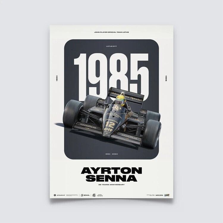 Umělecký tisk Ayrton Senna Classic Team Lotus 97T - 30 YEARS OF LEGACY - Limited Edition Poster, Automobilist, 50 × 70 cm