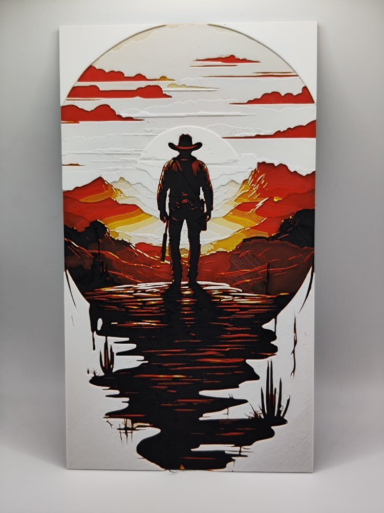 Perfektní doplněk do moderního interiéru, který ocení každý milovník westernů, nebo jako originální dárek pro někoho, kdo má rád tento styl. Pověste tento obraz na zeď a nechte se přenést do světa kovbojů a nekonečných prérií!Rozměry:výška: 24 cmšířka: 13,5 cmhloubka: 2,34 mmVyrobeno technologií... prečítať celé