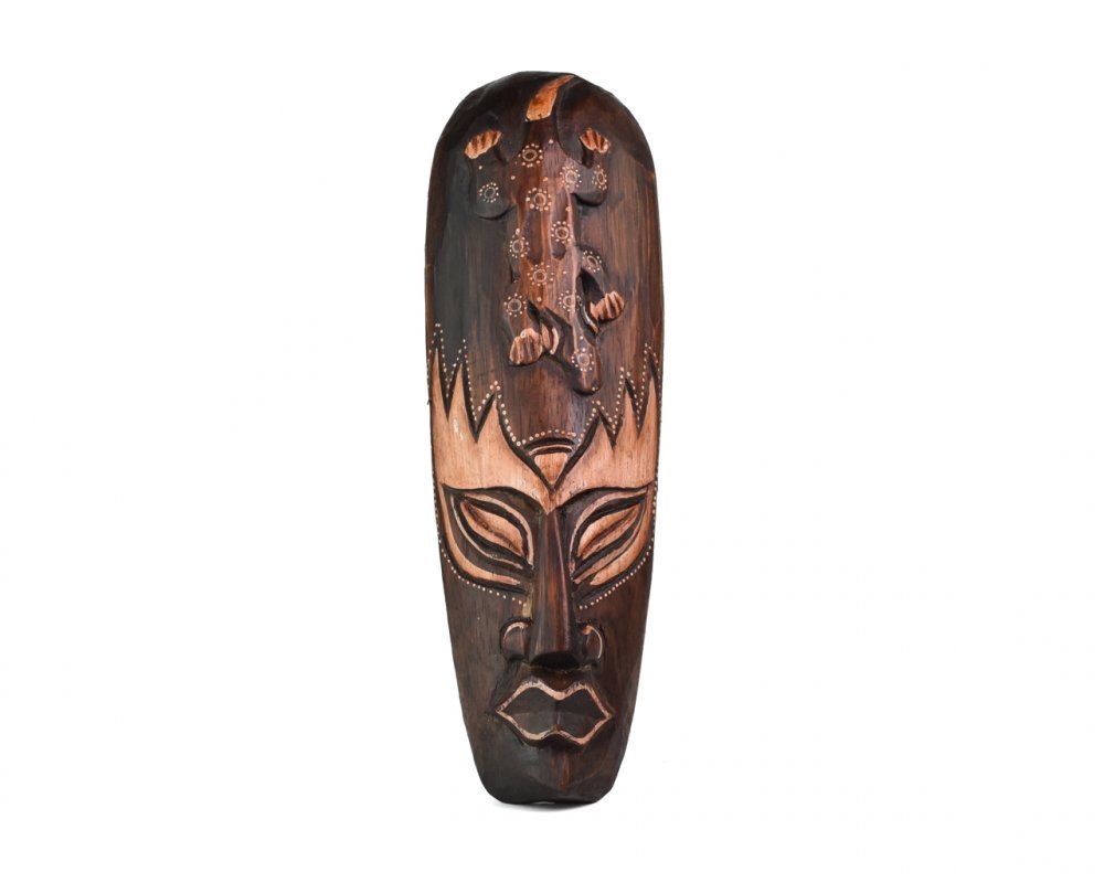 Dekorativní indonéská maska s vyřezaným dekorem ještěrky.Rozměry 30 x 9 cmVáha cca 200 g prečítať celé