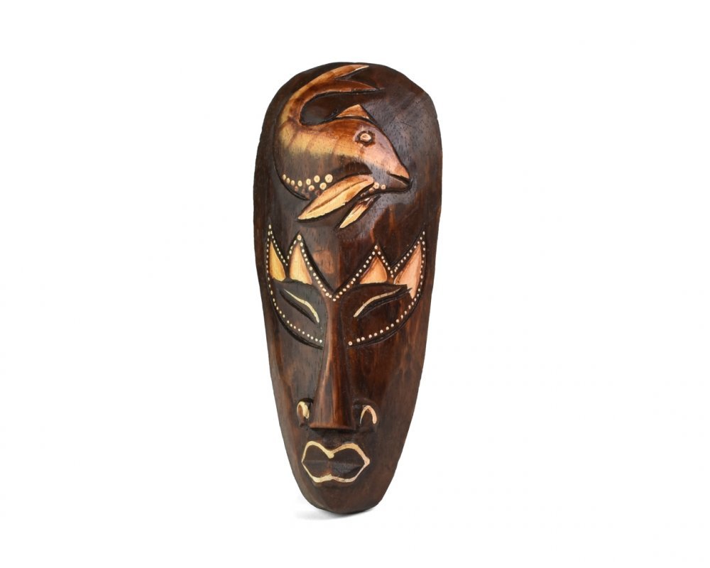 Dekorativní indonéská maska s vyřezaným dekorem delfína.Rozměry 20 x 8,5 cmVáha cca 80 g prečítať celé