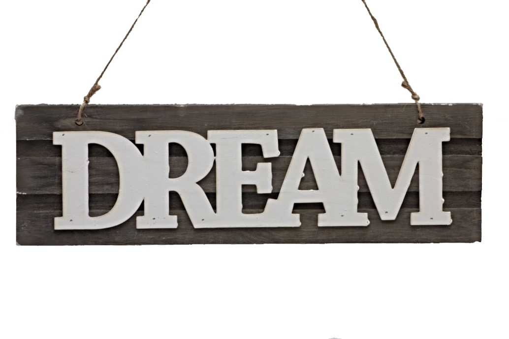 Dřevěná cedulka na zavěšení s nápisem DREAM.Rozměr (VŠD): 12 x 1,5 x 40 cm. prečítať celé