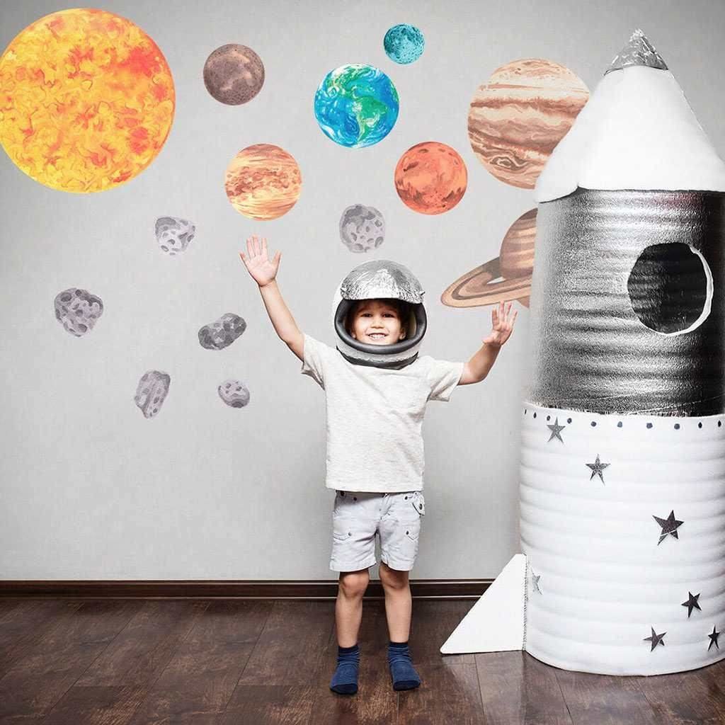 Krásná nálepka na zeď Sluneční soustava L. Samolepky sluneční soustavy jsou skvělým způsobem, jak přidat do dětského pokoje nadpozemský vesmírný motiv. Sada samolepek obsahuje 8 planet: Merkur, Venuše, Země, Mars, Jupiter, Saturn, Uran a Neptun. Sada také obsahuje slunce, měsíc a několik...