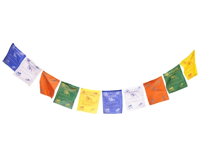 Tibetské modlitební praporky mají 5 různých barev, které zastupují 5 elementů země. Červená barva - oheň, zelená - dřevo, žlutá - země, modrá - voda, bílá - kov. Každý praporek nese buddhovo učení (mantry a sútry) a vyobrazení LUNGTY. Lungta znamená v překladu "větrný kůň" a je tibetským symbolem...