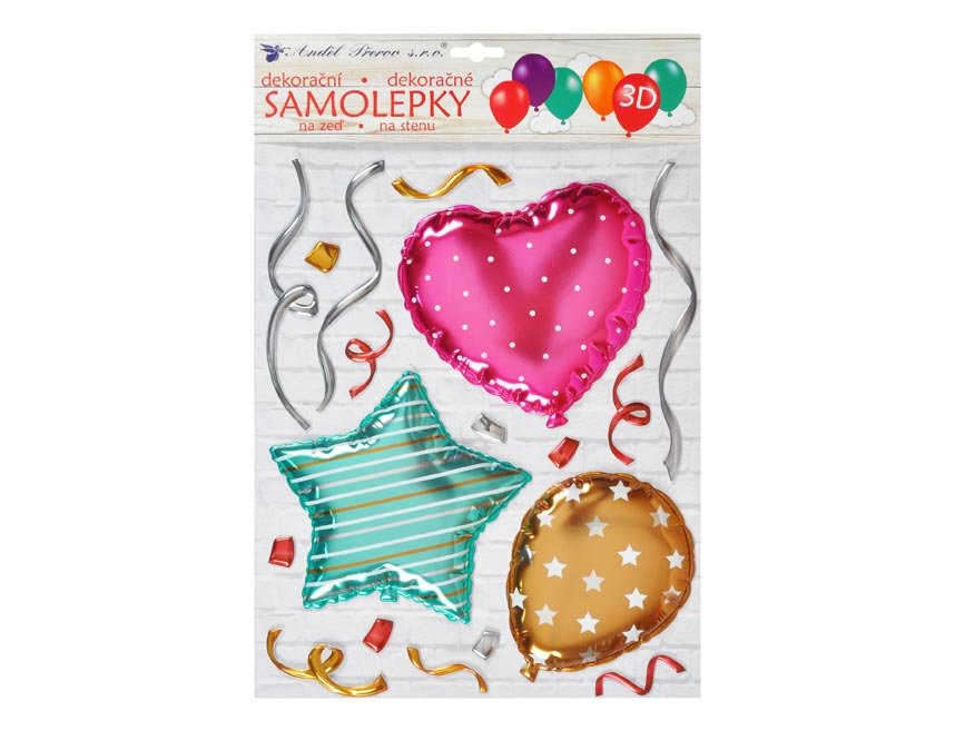 Samolepka na zeď 3D balónková. Samolepky jsou vhodné na stěny, zrcadla, kachličky a jiné hladké plochy.NÁVOD:1. Opatrně sejměte samolepku z podkladového papíru a umístěte ji na zvolenou suchou, čistou a rovnou plochu. 2. Samolepku vyhlaďte od středu ke krajům tak aby pod ní nezůstali žádné...