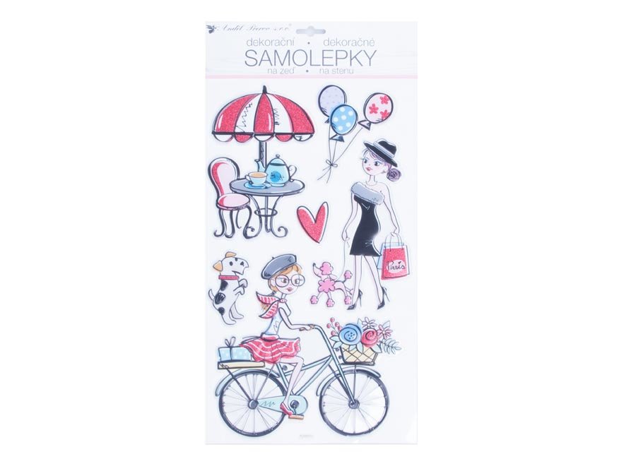 Samolepící dekorace na zeď plastická s glitry francouzský šarm. Vhodná na stěny, zrcadla, kachličky a jiné hladké plochy.