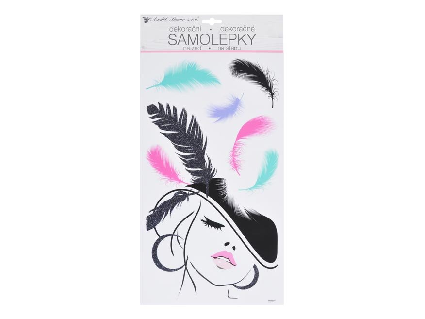 Samolepící dekorace s glitry - dáma. Samolepky jsou vhodné na stěny, zrcadla, kachličky a jiné hladké plochy.