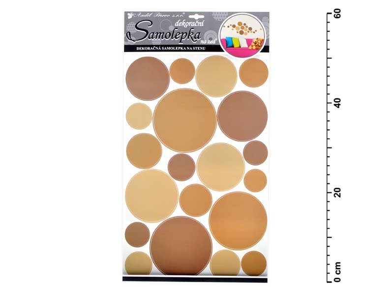 Pokojová samolepící dekorace béžová kolečka. Vhodná na stěny, dveře, okna, zrcadla a jiné hladké plochy. Tato samolepka na zeď v mžiku oživí Váš obývací pokoj, koupelnu, chodbu, dětský pokoj či ložnici.