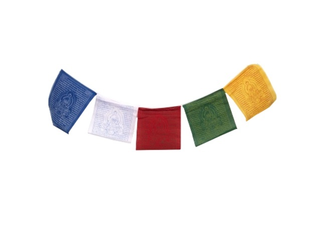 Tibetské modlitební praporky mají 5 různých barev, které zastupují 5 elementů země. Červená barva - oheň, zelená - dřevo, žlutá - země, modrá - voda, bílá - kov. Každý praporek nese buddhovo učení (mantry a sútry) a vyobrazení Buddhy medicíny. Při řádném uctívání přináší duchovní léčbu. Buddha...