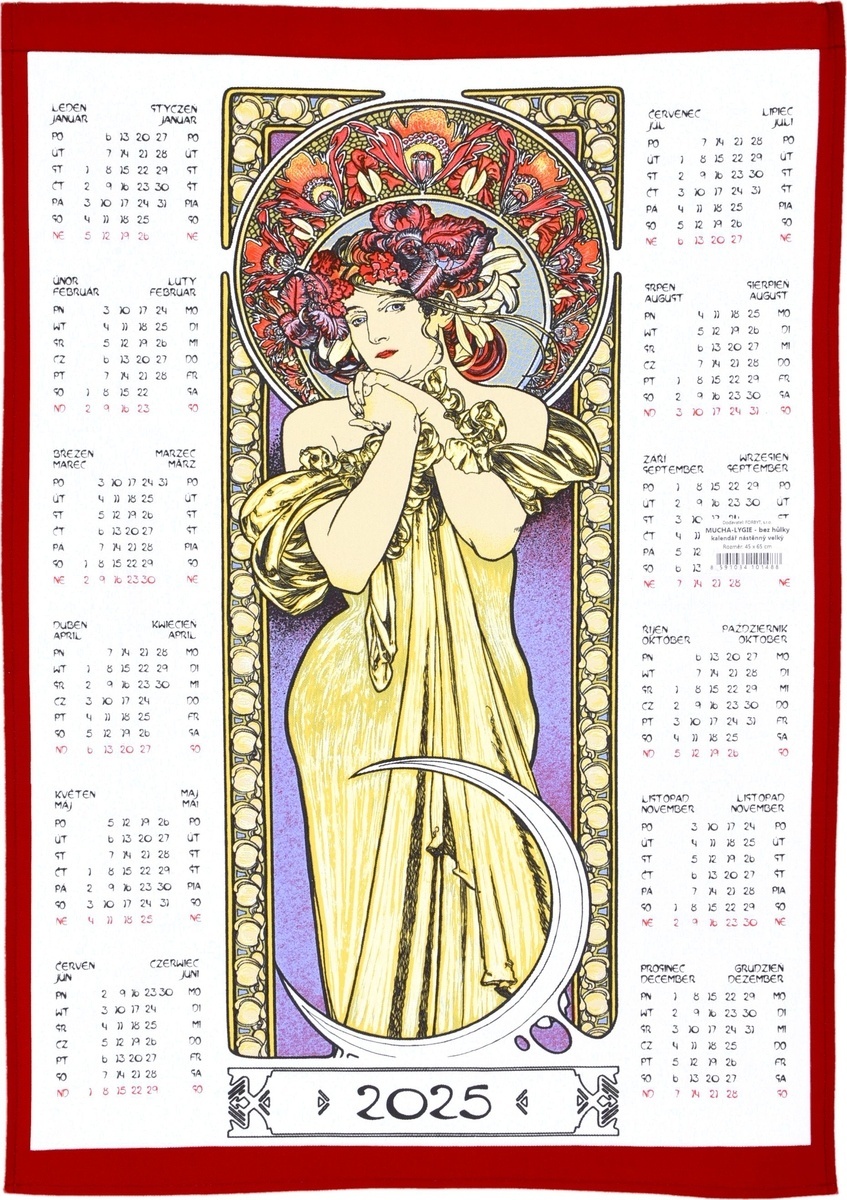 Kalendář textilní, Alfons Mucha - Lygie 2025 S hůlkou