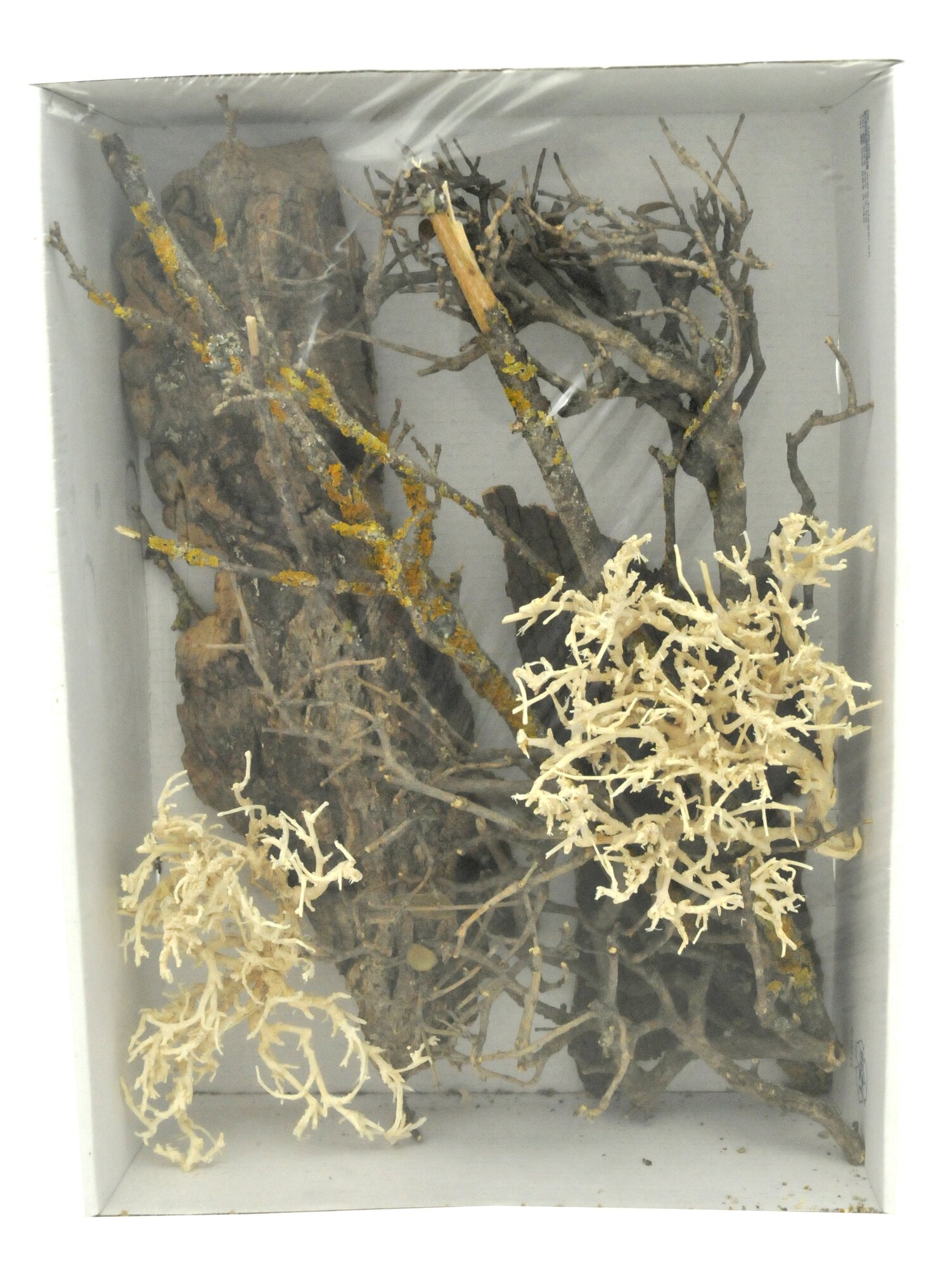 - Zmiešané malé korkové vetvičky, suchý mach, kôra a ďalšie prírodné prvky.