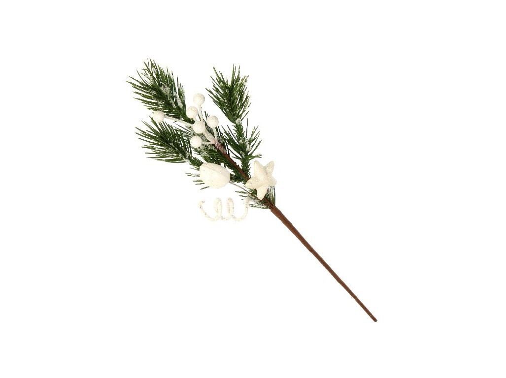 Větvička 340 mm zasněžená s kuličkami a hvězdou
