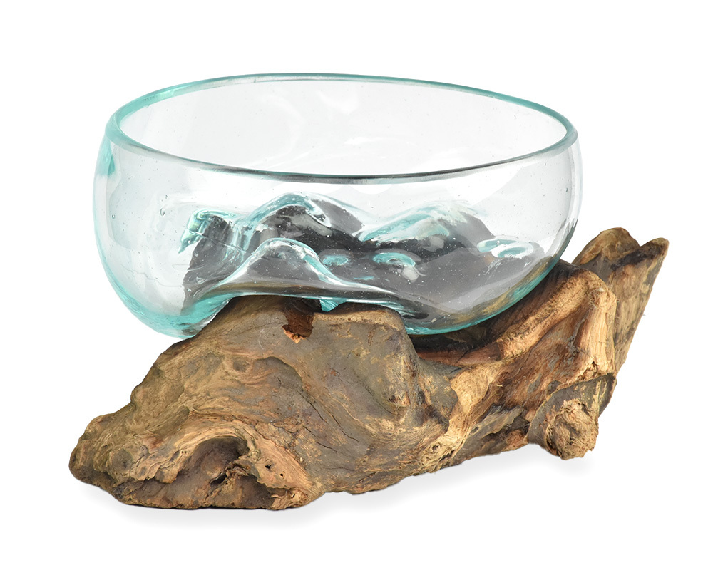 Tato skleněná mísa spojuje tavené sklo a přírodní dřevo v praktický a estetický doplněk do interiéru. Sklo je ručně tvarované tak, aby přesně zapadlo na dřevěný podklad, což vytváří příjemný kontrast mezi chladným sklem a teplým dřevem. Každý kus je originální díky přirozené struktuře dřeva a...