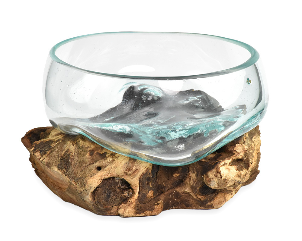 Tato skleněná mísa spojuje tavené sklo a přírodní dřevo v praktický a estetický doplněk do interiéru. Sklo je ručně tvarované tak, aby přesně zapadlo na dřevěný podklad, což vytváří příjemný kontrast mezi chladným sklem a teplým dřevem. Každý kus je originální díky přirozené struktuře dřeva a...