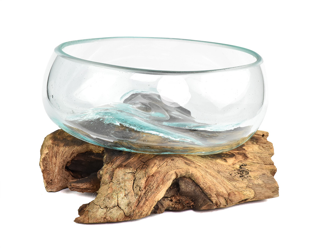 Tato skleněná mísa spojuje tavené sklo a přírodní dřevo v praktický a estetický doplněk do interiéru. Sklo je ručně tvarované tak, aby přesně zapadlo na dřevěný podklad, což vytváří příjemný kontrast mezi chladným sklem a teplým dřevem. Každý kus je originální díky přirozené struktuře dřeva a...
