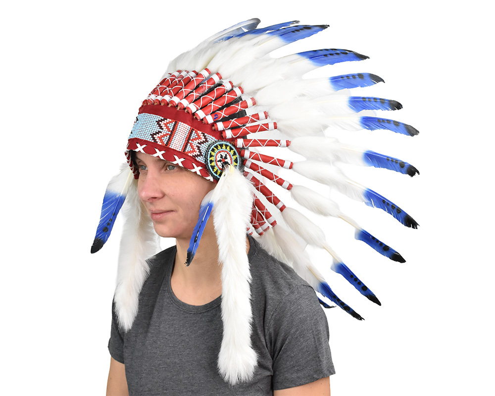 Tato indiánská čelenka je ideálním doplňkem ke kostýmu indiána na karneval, tematickou párty nebo dětskou hru na indiány. Barevné peří a tradiční zdobení dodají autentický vzhled, díky kterému vyniknete na každé akci. Vyrobena z lehkých a příjemných materiálů pro pohodlné nošení.