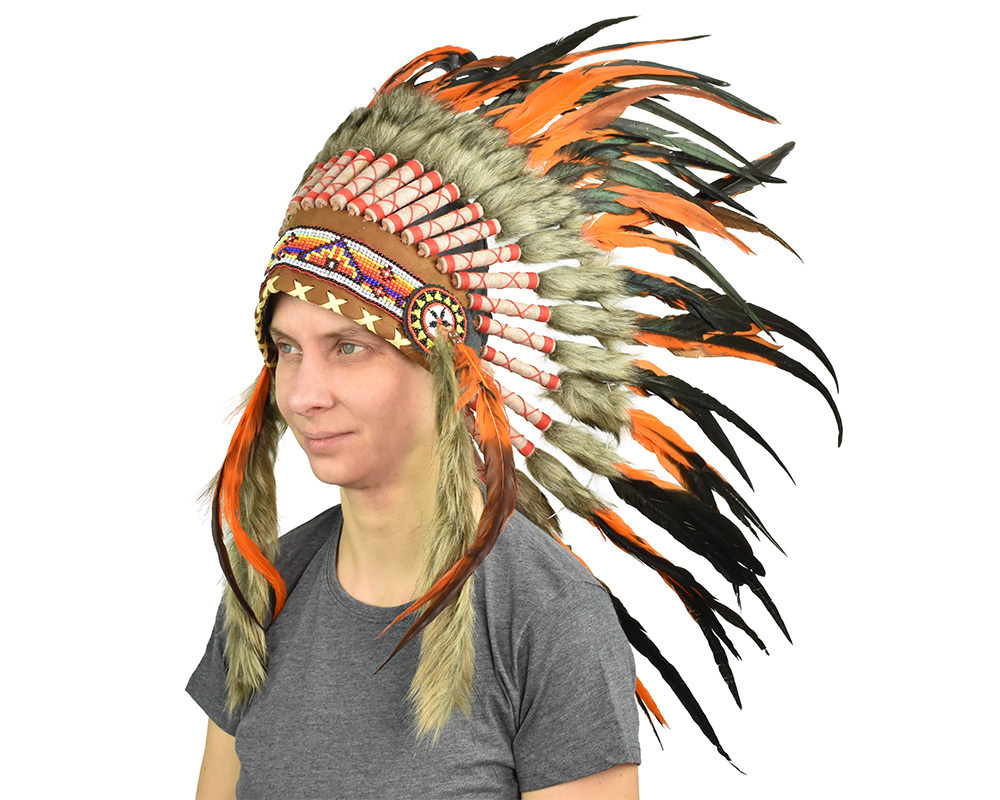 Tato indiánská čelenka je ideálním doplňkem ke kostýmu indiána na karneval, tematickou párty nebo dětskou hru na indiány. Barevné peří a tradiční zdobení dodají autentický vzhled, díky kterému vyniknete na každé akci. Vyrobena z lehkých a příjemných materiálů pro pohodlné nošení.