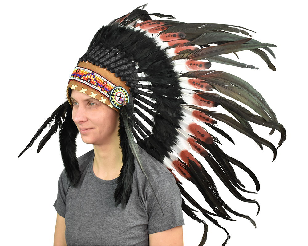 Tato indiánská čelenka je ideálním doplňkem ke kostýmu indiána na karneval, tematickou párty nebo dětskou hru na indiány. Barevné peří a tradiční zdobení dodají autentický vzhled, díky kterému vyniknete na každé akci. Vyrobena z lehkých a příjemných materiálů pro pohodlné nošení.