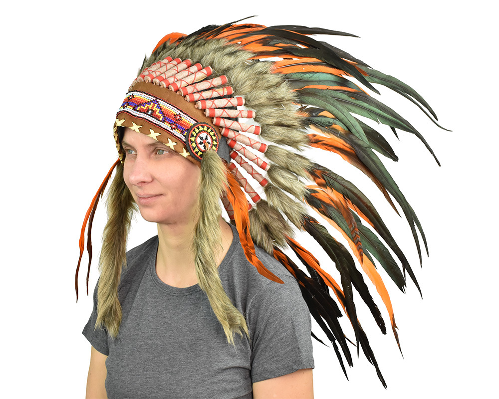Tato indiánská čelenka je ideálním doplňkem ke kostýmu indiána na karneval, tematickou párty nebo dětskou hru na indiány. Barevné peří a tradiční zdobení dodají autentický vzhled, díky kterému vyniknete na každé akci. Vyrobena z lehkých a příjemných materiálů pro pohodlné nošení.