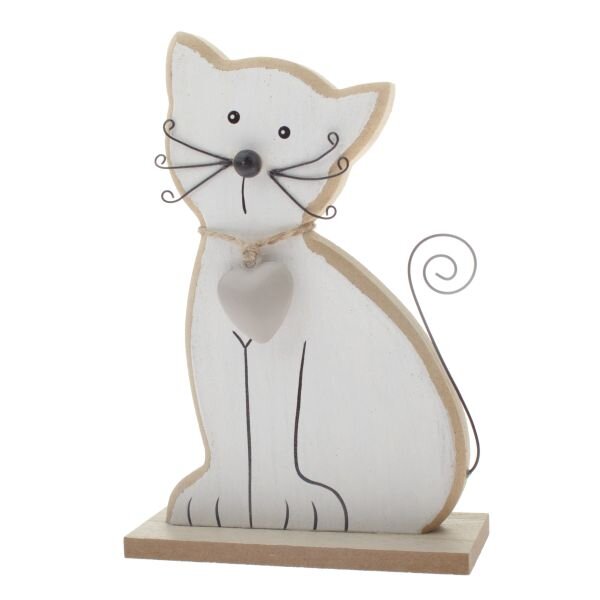 Dřevěná kočka 15cm - bílá, 6/72