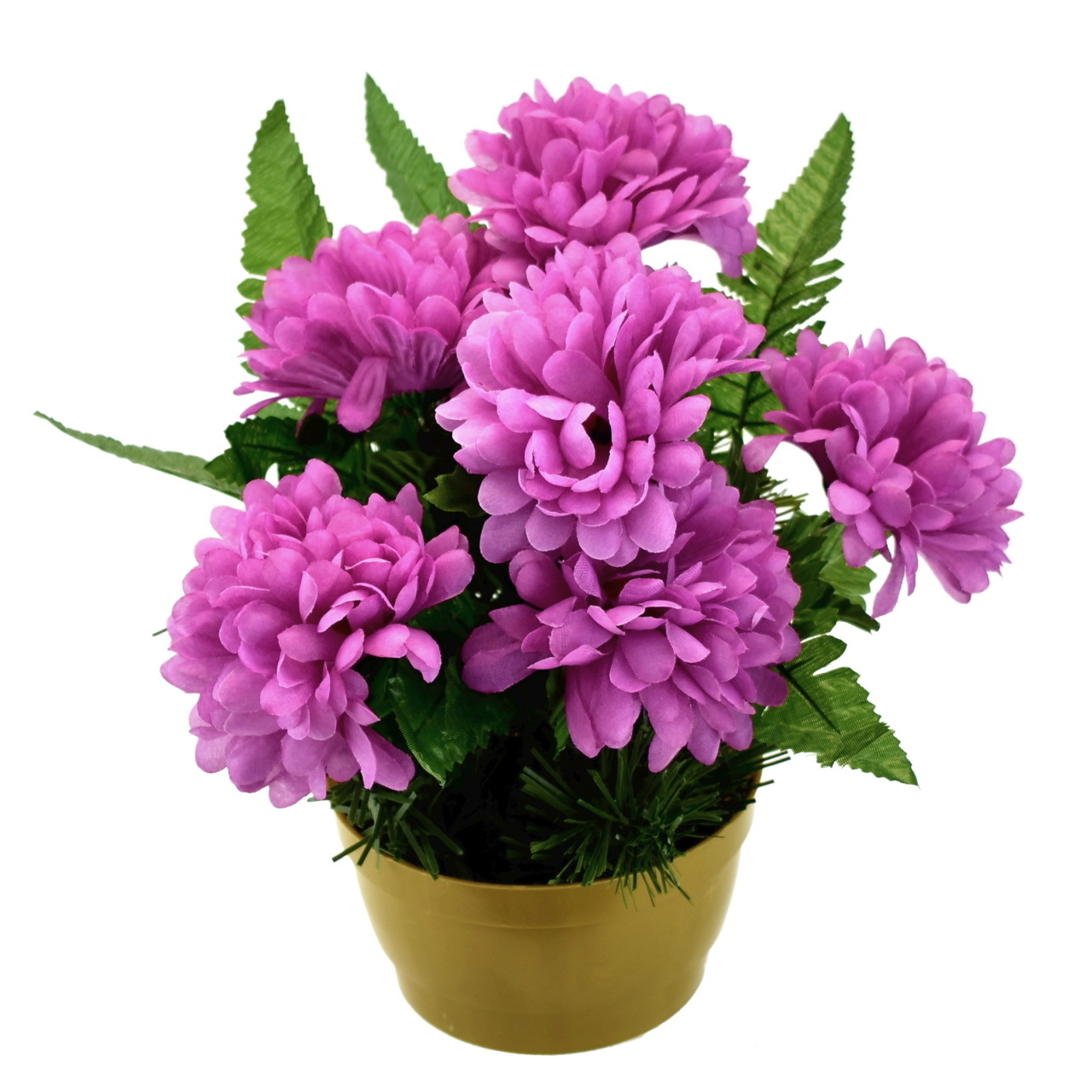 Dušičková miska s fialovými chryzantémami a kapradím 23 x 22 cm