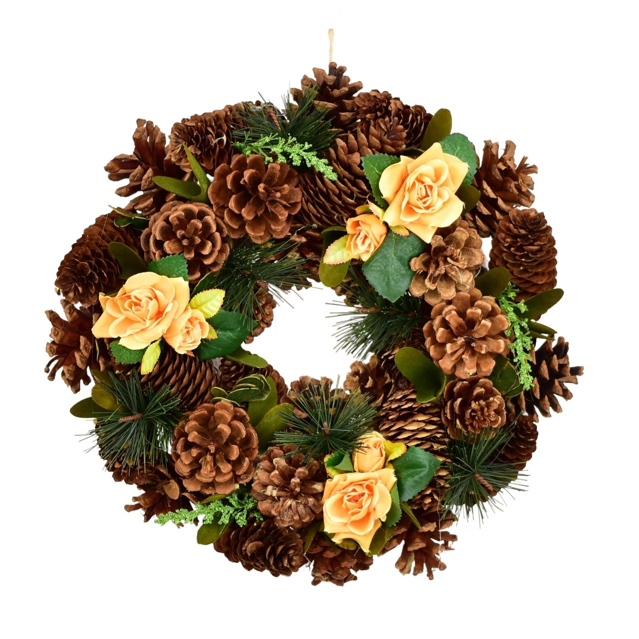 Věnec šiškový se žlutými růžičkami Ø30 cm
