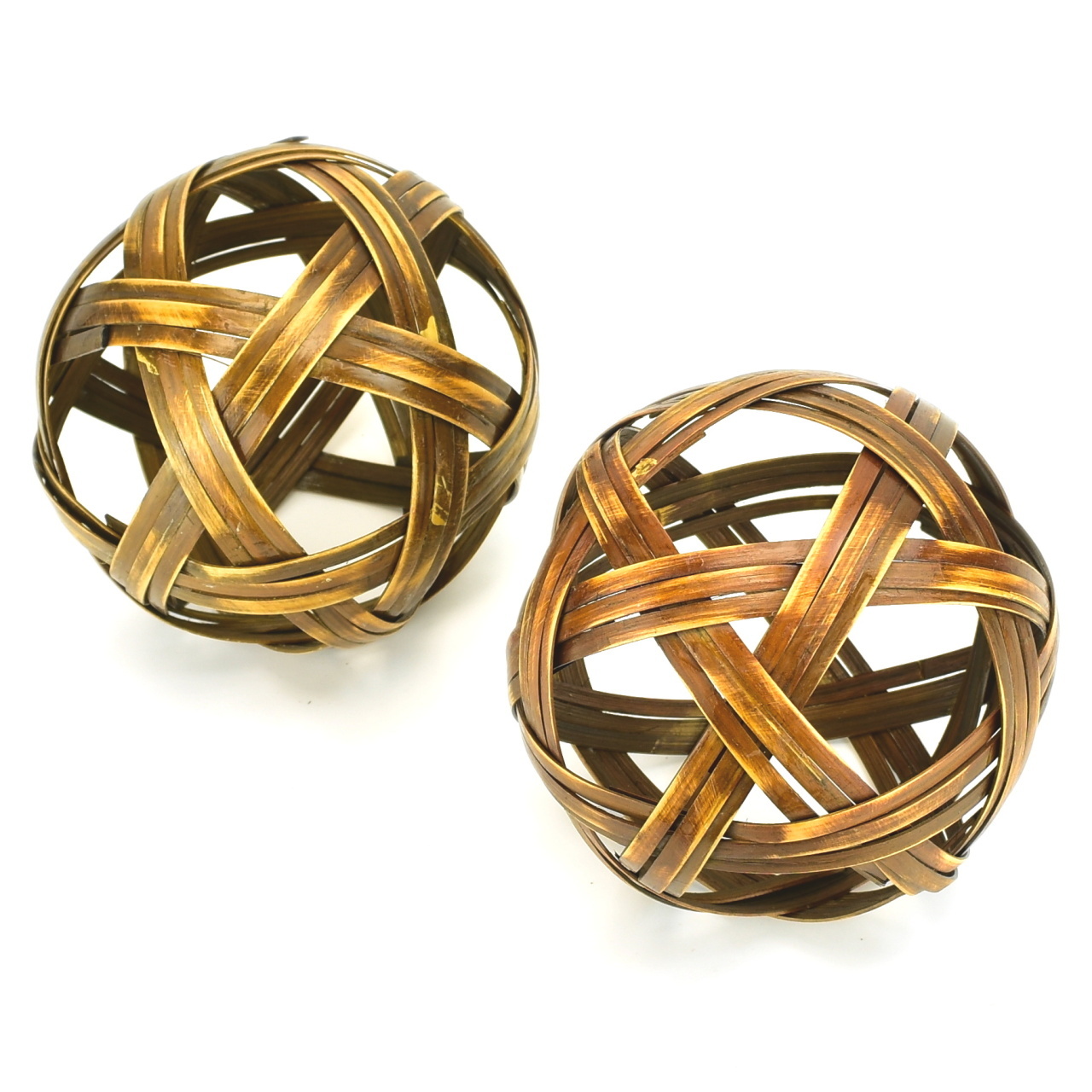 Bambusové dekorační koule hnědé, 2 ks, Ø12 cm