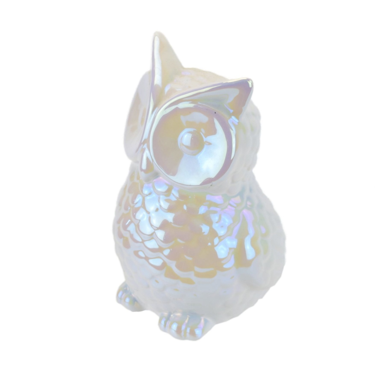 Sova keramická, bílá perleť, 14x10 cm