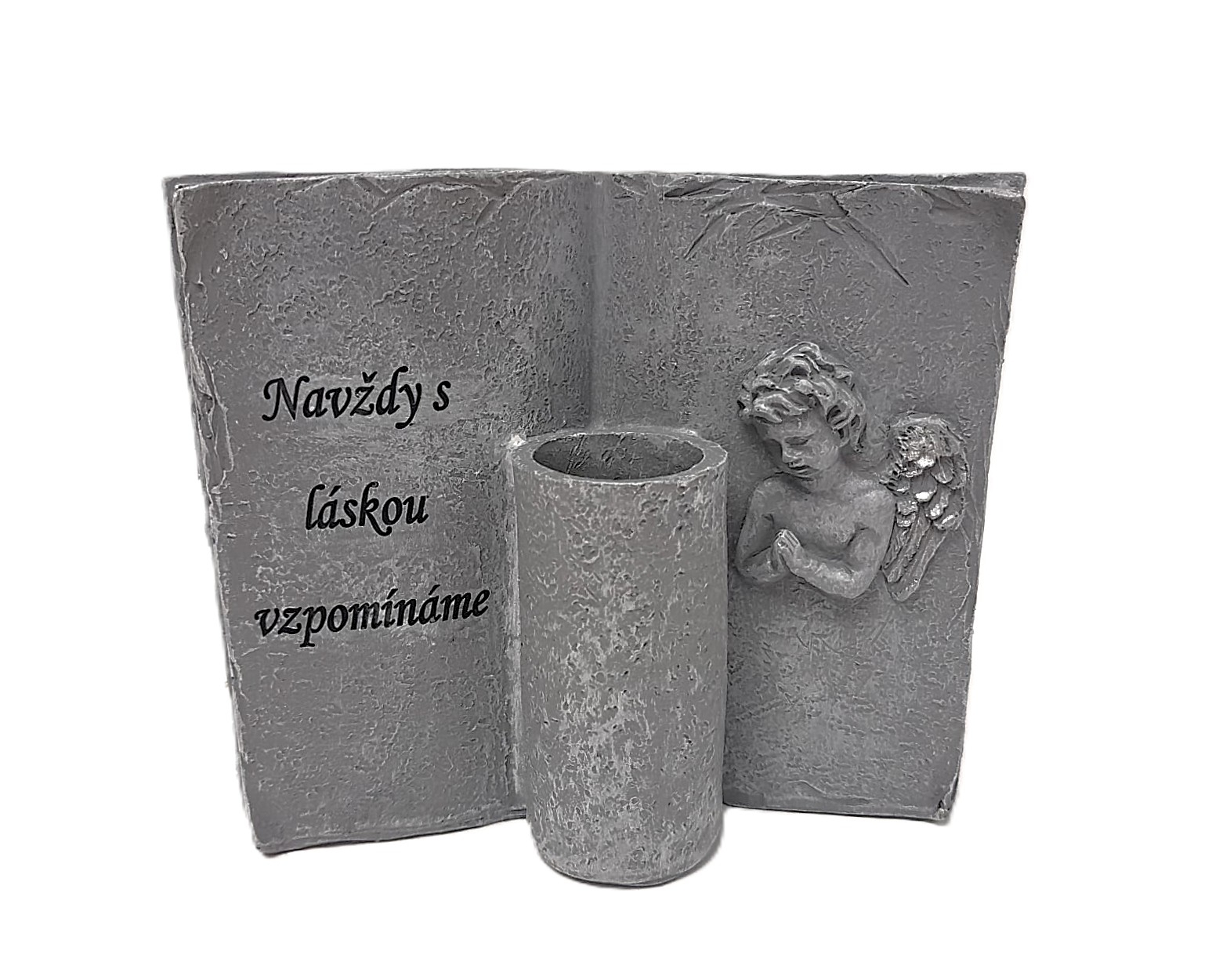 Svícen kniha s andělem a nápisem