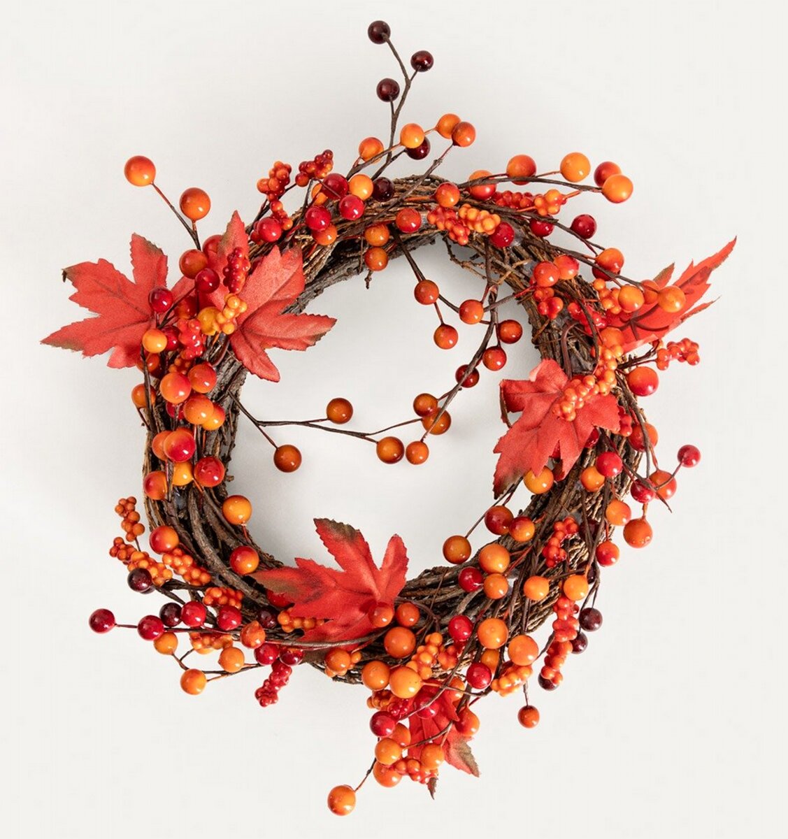 Věnec | WENC | s oranžovými kuličkami a listy | 25 cm | 752759