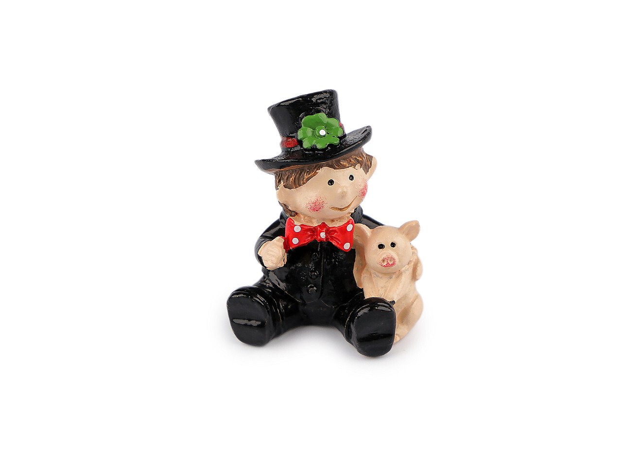 Kominíček pro štěstí v dárkové tašce - 1 ks - 3 černá prasátko