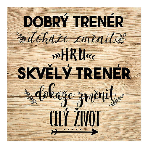 Dekorační obraz 30 x 30 cm - trenérOriginální dárek pro všechny sportovní trenéry a trenérky, kteří věnují vám nebo vašim dětem svůj volný čas, a kterým chcete poděkovat za jejich přístup. Dárek pro trenéry k narozeninám nebo k Vánocům. Dekorace do bytu či domu.Směsná deska s potiskem: tloušťka...