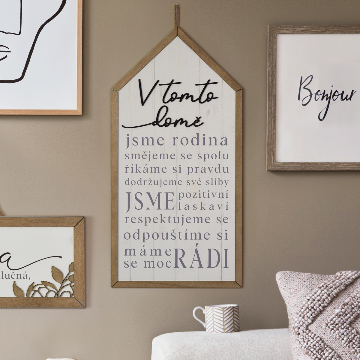 Domeček - V tomto domě... Domeček s pravidly je skvělou volbou pro všechny rodiny! Vyzdobte své stěny zajímavou dekorací! Domeček je navržen formou 3D - Rámeček a nadpis "V tomto domě" je vyřezán zvlášť, a tak tvoří zajímavý plastický pohled. Kvalitní zpracování a moderní vzhled cedulky se hodí...