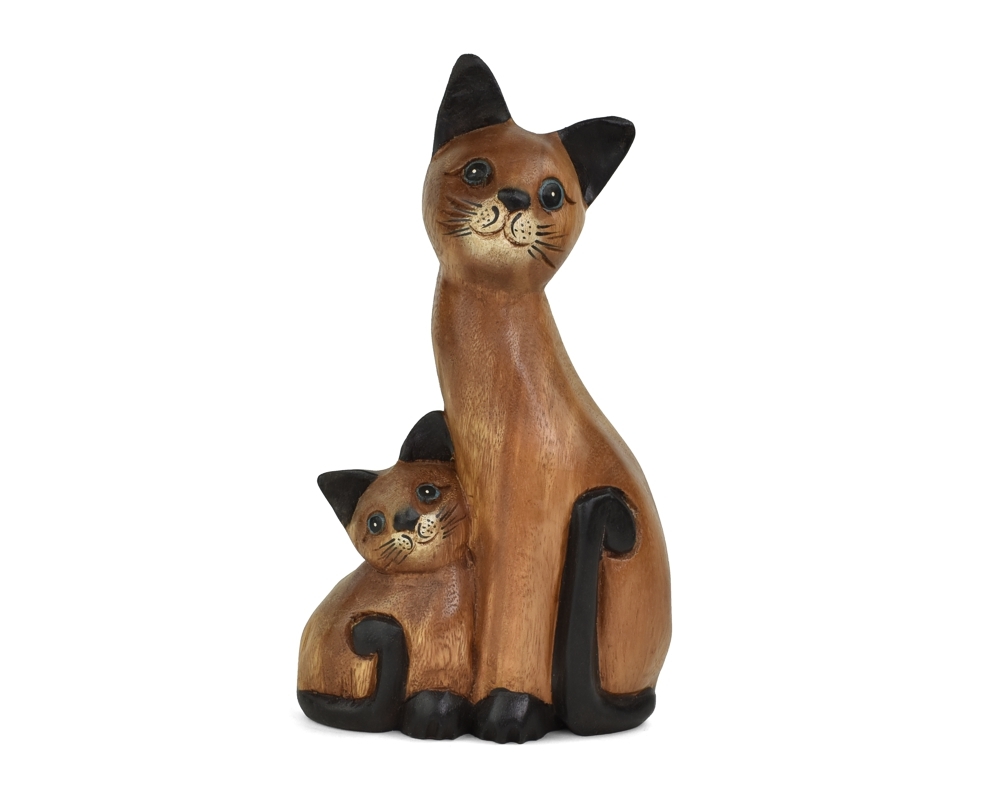 Dřevěná dekorace Kočka s kotětem 32 cm