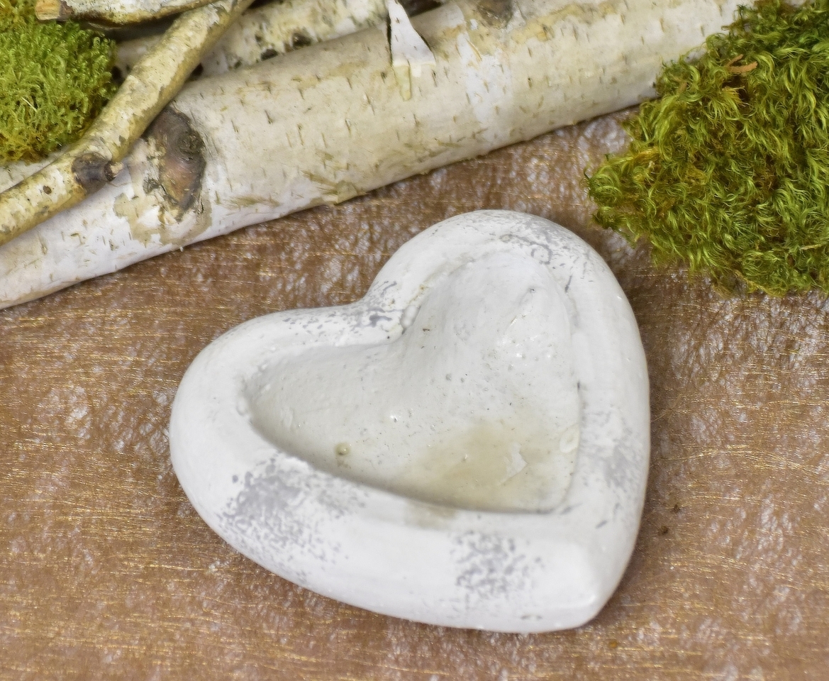 Přírodní dekorace z cementu. Elegantní obal ve tvaru srdce na květiny, který mu dodává výjimečný vzhled. Betonové obaly jsou velmi populární, můžete je využít na živé, suché nebo i umělé květiny.