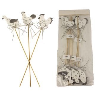 Sada dřevěných zápichů. Sada obsahuje 6 zápichů. Zápichy mají šířku 7 cm, tloušťku 0,3 cm, výšku 8 cm, celková výška zápichu 36 cm. Barva : kombinace bílá s šedou. Materiál na bázi dřeva. prečítať celé