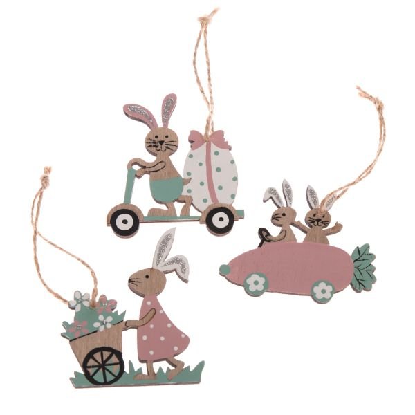 Dřevěné závěsné jarní dekorace - sada, 24/288